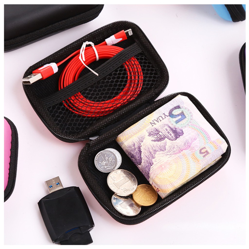 Hộp đựng cáp sạc tai nghe đa năng giúp cho việc đựng các phụ kiện điện thoại máy tính bản thêm gọn gàng, có thể đưng tiền hoạc thẻ ATM.