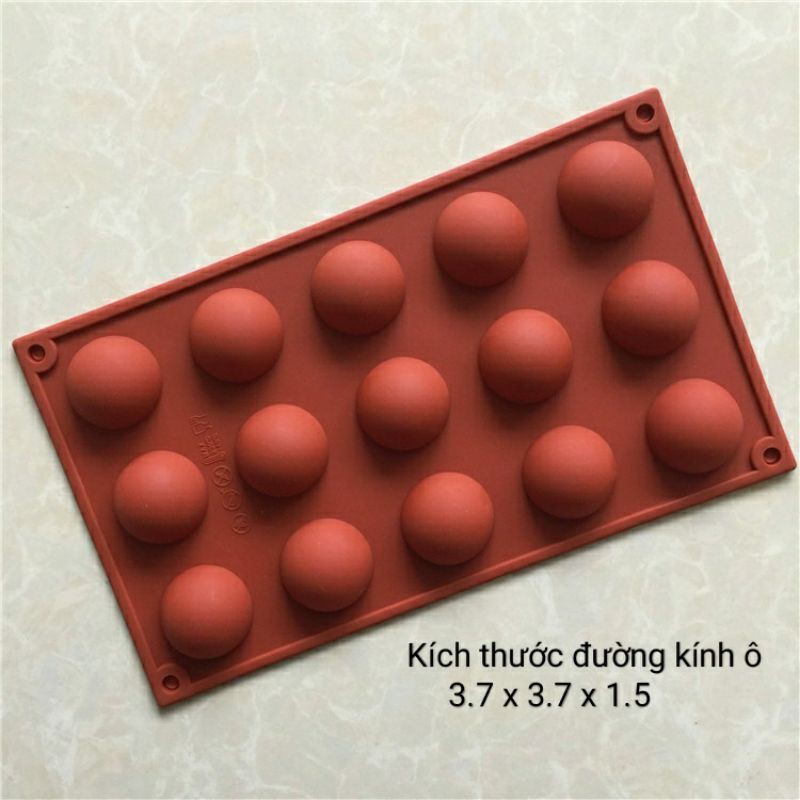Khuôn silicon đổ socola thạch rau câu 15 ô nửa hình tròn.Kích thước : 17 x 29 x 1.9cm.