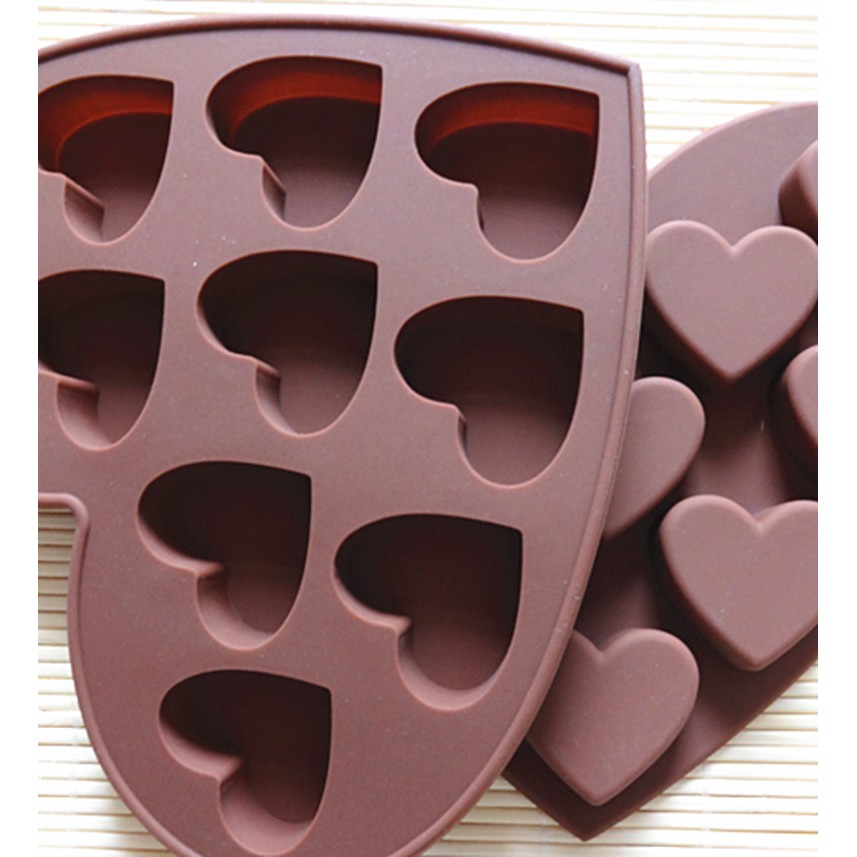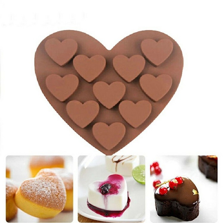 Nhà cửa & Đời sống > Dụng cụ nhà bếp > Dụng cụ nướng & trang trí bánh || SG - Khuôn silicon tim làm bánh thạch rau câu pudding, khuôn đổ socola 10 hình trái timCòn hàng