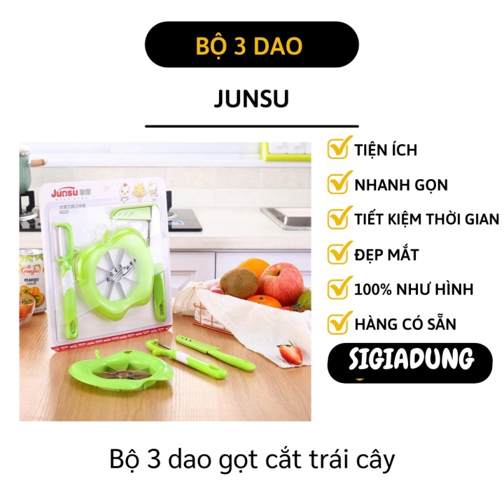 Giới thiệu [SGD] Dao Nhà Bếp - Bộ 3 Dao Cắt Trái Cây, Cắt Táo, Lê Thành 8 Miếng, Gọt Vỏ Củ Quả 8762