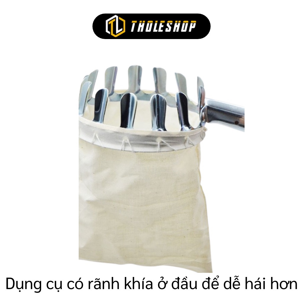 + Trái cây sau khi hái rơi vào túi vải, có thể hái nhiều trái rồi sau đó mới lấy ra từ trong túi vải. Túi có thể đựng nhiều loại trái như xoài, vú sữa, ổi, bưởi, chôm chôm, nhãn, vải thiều,... mà không lo bị rơi rớt ra ngoài
