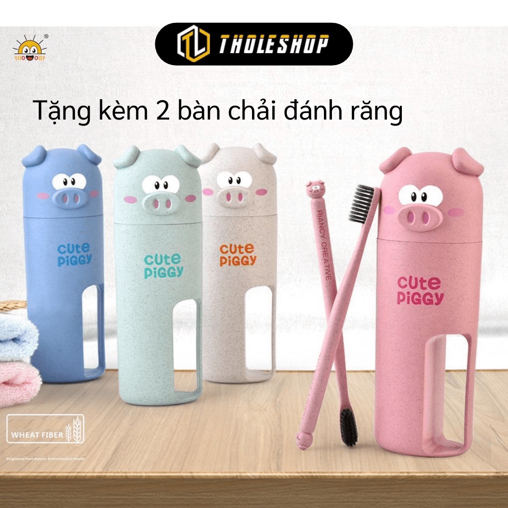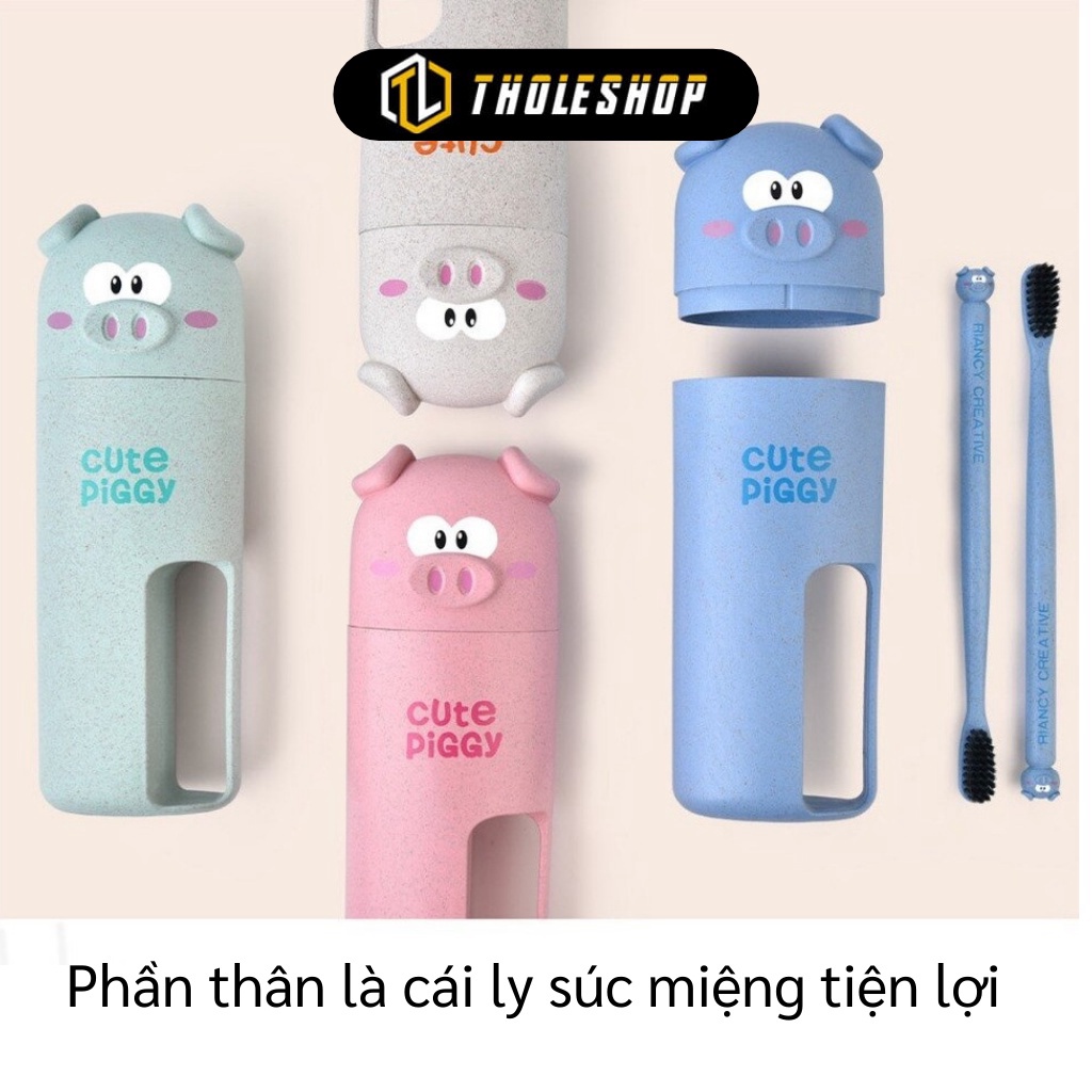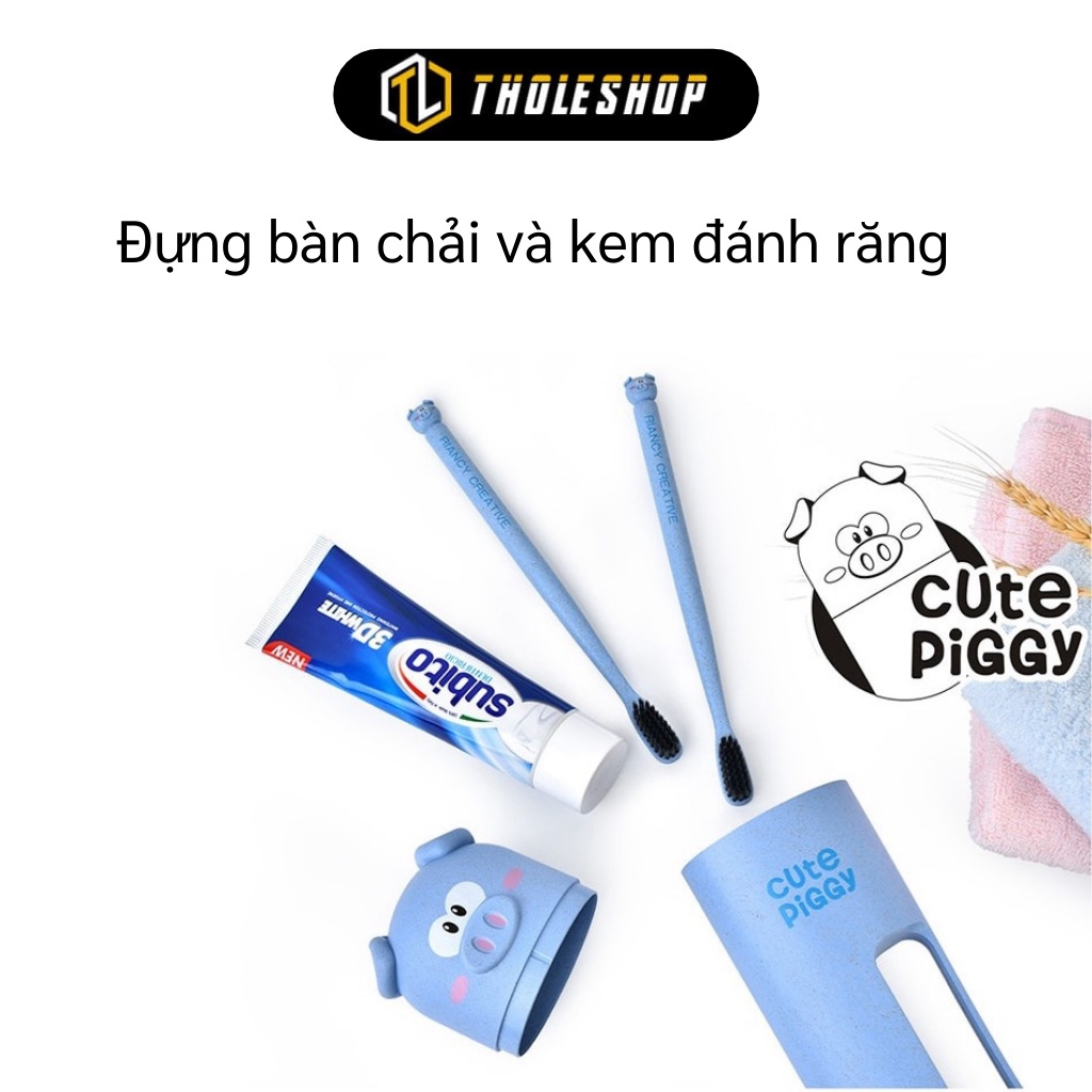 [SGD] Hộp Đựng Bàn Chải Du Lịch - Lọ Bảo Quản Kem Đánh Răng Kèm 2 Bàn Chải Hình Heo Piggy 8356