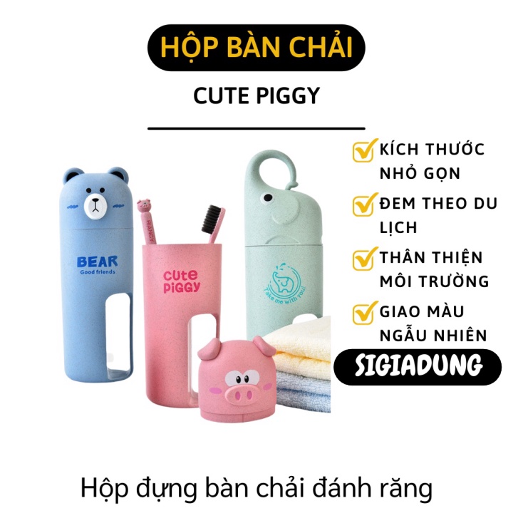 Giới thiệu [SGD] Hộp Đựng Bàn Chải Du Lịch - Lọ Bảo Quản Kem Đánh Răng Kèm 2 Bàn Chải Hình Heo Piggy 8356