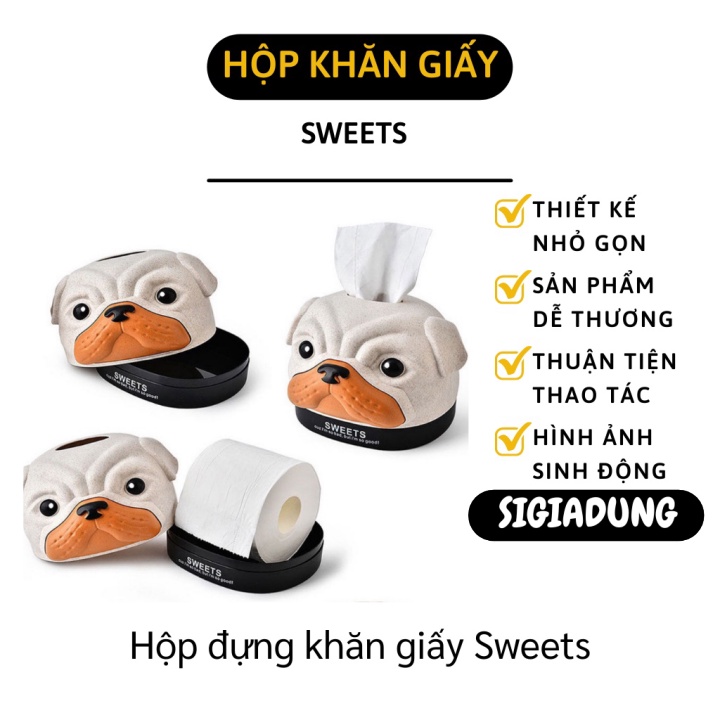Giới thiệu [SGD] Hộp Đựng Khăn Giấy Dễ Thương - Hộp Khăn Giấy Để Bàn Hình Chó Mặt Xệ Sweets 9870