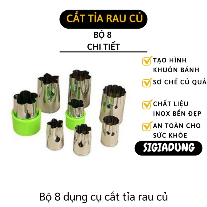 [SGD] Tỉa Rau Củ - Khuôn Tạo Hình Củ Quả, Rau Cầu, Bánh Quy 8 Món Cho Bé Bằng Thép Không Gỉ 4001