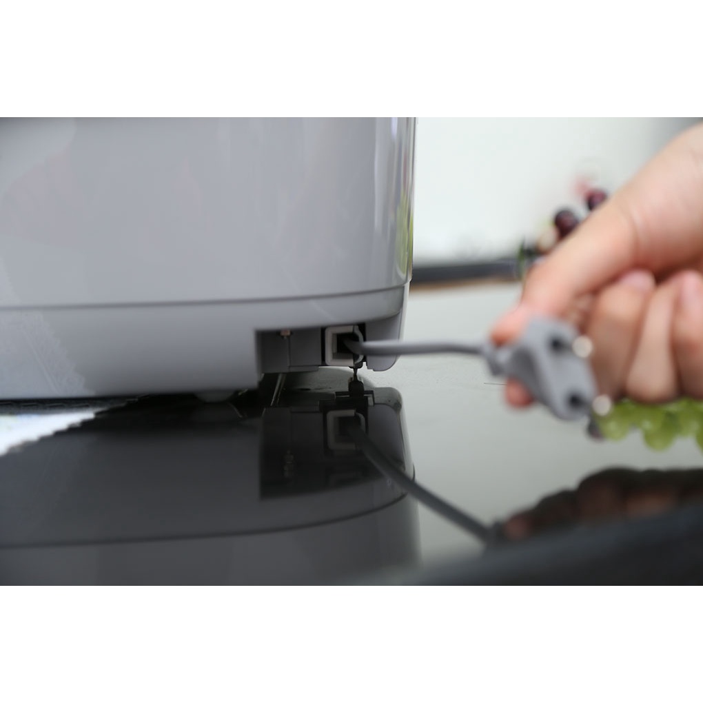 Nồi cơm điện Sharp có kiểu dáng nhỏ nhắn, thanh thoát cùng tông màu xám sáng sang trọng, dây điện rút giúp nồi trông gọn gàng không vướng víu khi di chuyển.