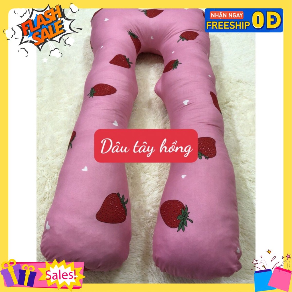 [ship hcm]Vỏ Gối Ôm Bà Bầu Hình Chữ U,Gối ôm đa năng mẫu dâu tây hồng