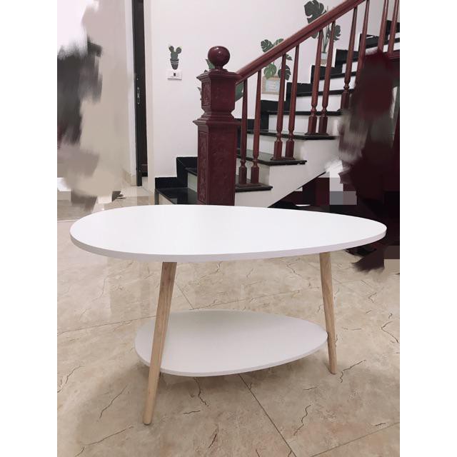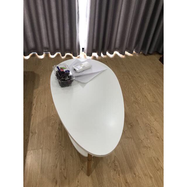[SHIP HỎA TỐC]Bàn trà hình trứng 2 tầng màu trắng kêt hợp với ghế sofa .GP56