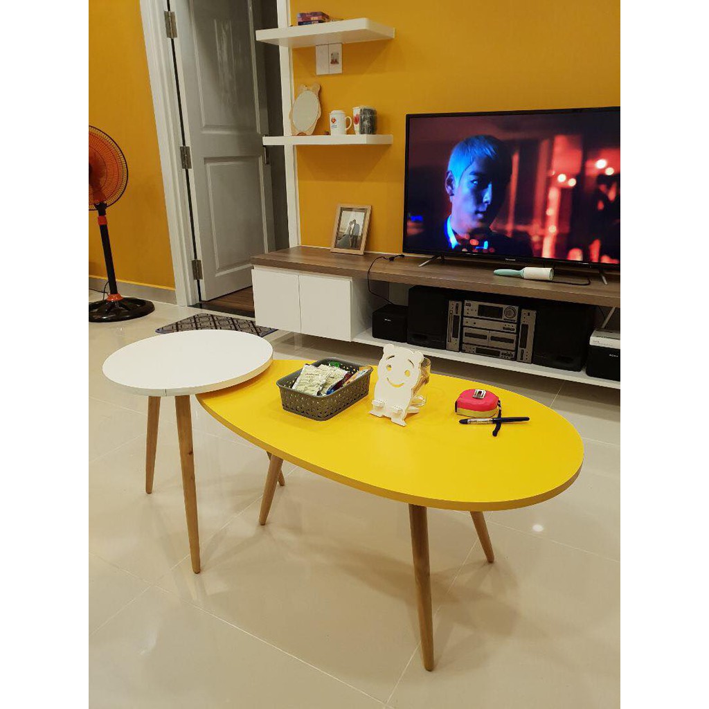 Nhà cửa & Đời sống > Nội thất > Bàn || [SHIP HỎA TỐC]Combo Bàn Trà SOFA Mặt Tròn rộng 50cm và hình trứng Màu Vàng.BT50M-GP55Còn hàng
