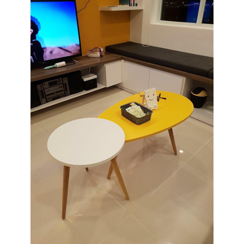 Giới thiệu [SHIP HỎA TỐC]Combo Bàn Trà SOFA Mặt Tròn rộng 50cm và hình trứng Màu Vàng.BT50M-GP55