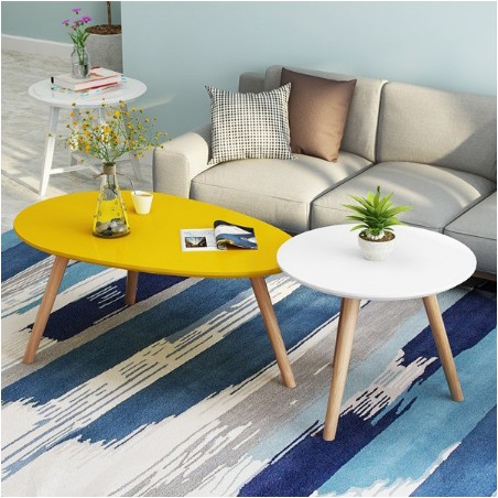 [SHIP HỎA TỐC]Combo Bàn Trà SOFA Mặt Tròn rộng 50cm và hình trứng Màu Vàng.BT50M-GP55