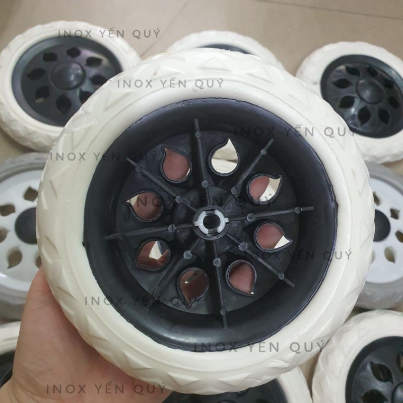 Bánh Xe Thay Thế Cho Xe kéo đi chợ , xe đi chợ có giỏ * Kích thước: + Đường kính 160mm + Bề dày 35mm* Đẩy êm không phát sinh tiếng kêu