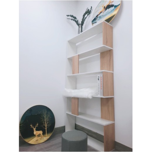 Giới thiệu [SHIP HỎA TỐC]Kệ sách đa tầng Mutil 5F hiện đại phòng khách trắng vân gỗ GP105.14
