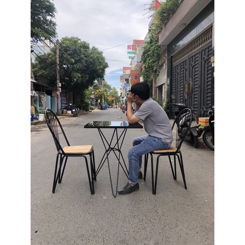 Ghế sắt kết hợp gỗ.Chất liệu sắt sơn tĩnh điện