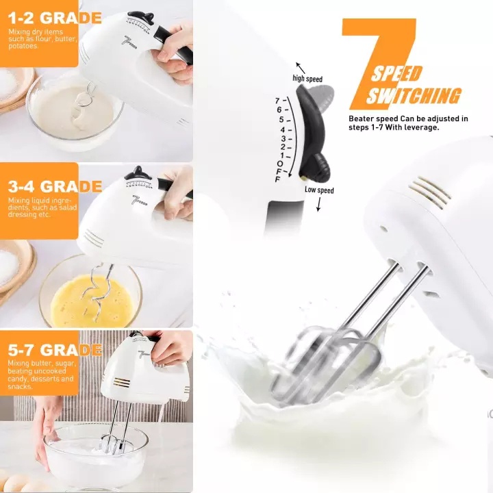 Ship từ Hồ Chí Minh Máy Đánh Trứng Thép Không Gỉ 7 Tốc Độ Máy Trộn Tay Điện An Toàn Và Dễ Dàng Sử Dụng Bao Gồm 2 Dụng Cụ