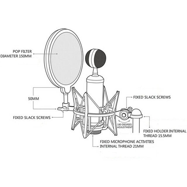 - Màng lọc âm pop filter loại bỏ tạp âm một cách.hiệu quả..- Khớp nối với ren xoáy kim loại tương thích với tất cả các dòng.chân đế micro..