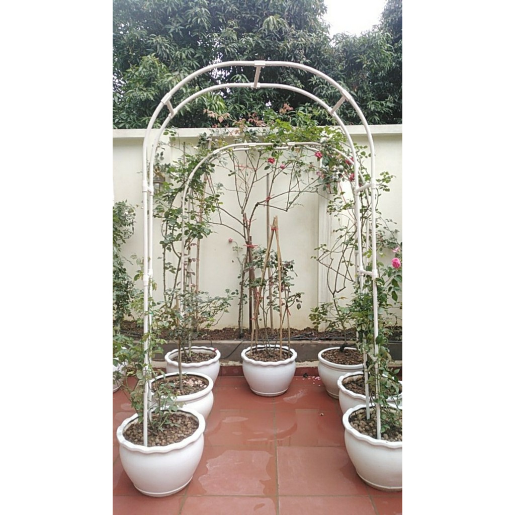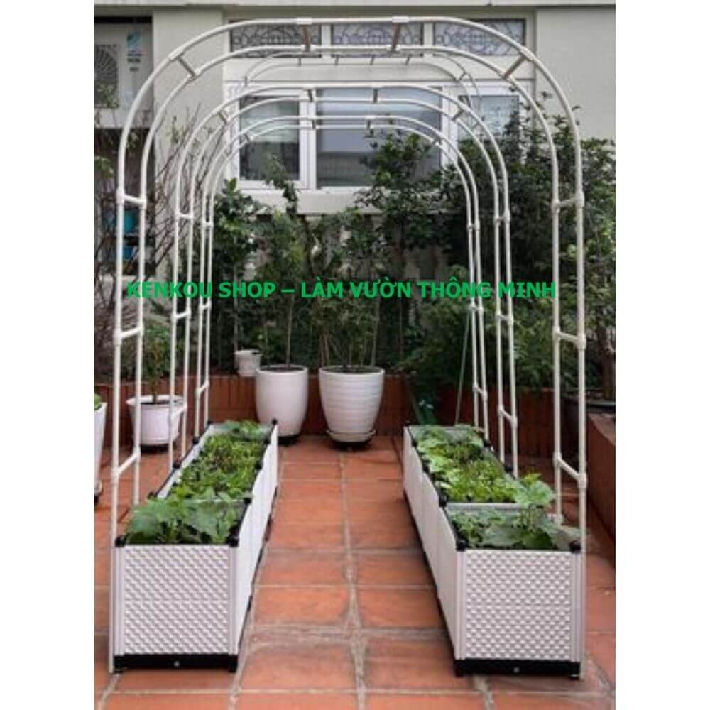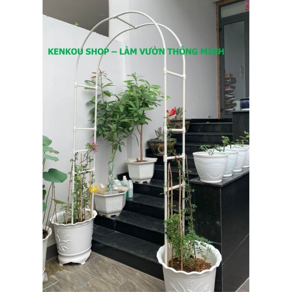 - Khung là ống lõi thép bọc nhựa phi 20, dùng trồng các loại cây leo như hoa hồng, hoa giấy, lan hoàng dương ...