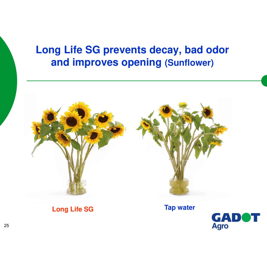 - Nâng cao chất lượng và kéo dài tuổi thọ của hoa tươi ở góc độ người tiêu dùng (từ 7 ngày đến 14 ngày tùy theo loại hoa và tùy theo quy trình xử lý trước khi sử dụng Long Life Israel)