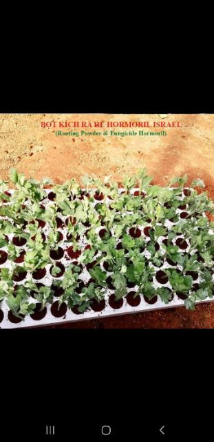 - Bột kích rễ Israel Hormoril kích cây ra rễ con và đạt thành công trong thời gian từ 5 ngày – 10 ngày, những cây giống có sử dụng bột tạo kích ra rễ sẽ nhìn thấy sự khác biệt quanh dấu giâm cành