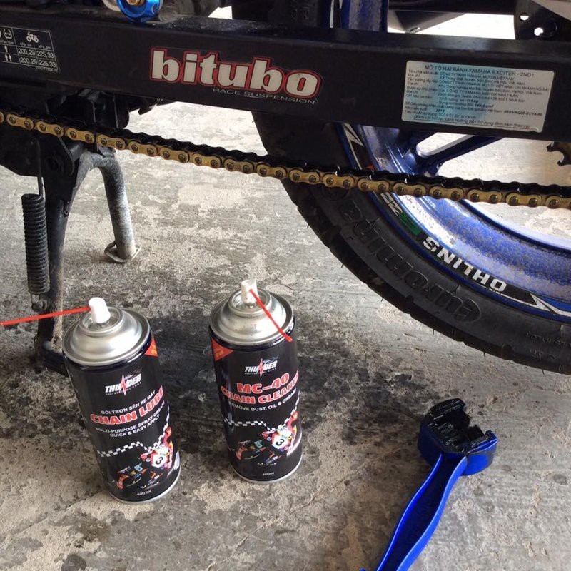 - Bước 3: Xịt Chain Lube lên đầu trên sên, chờ khoảng 5 phút trước khi vận hành