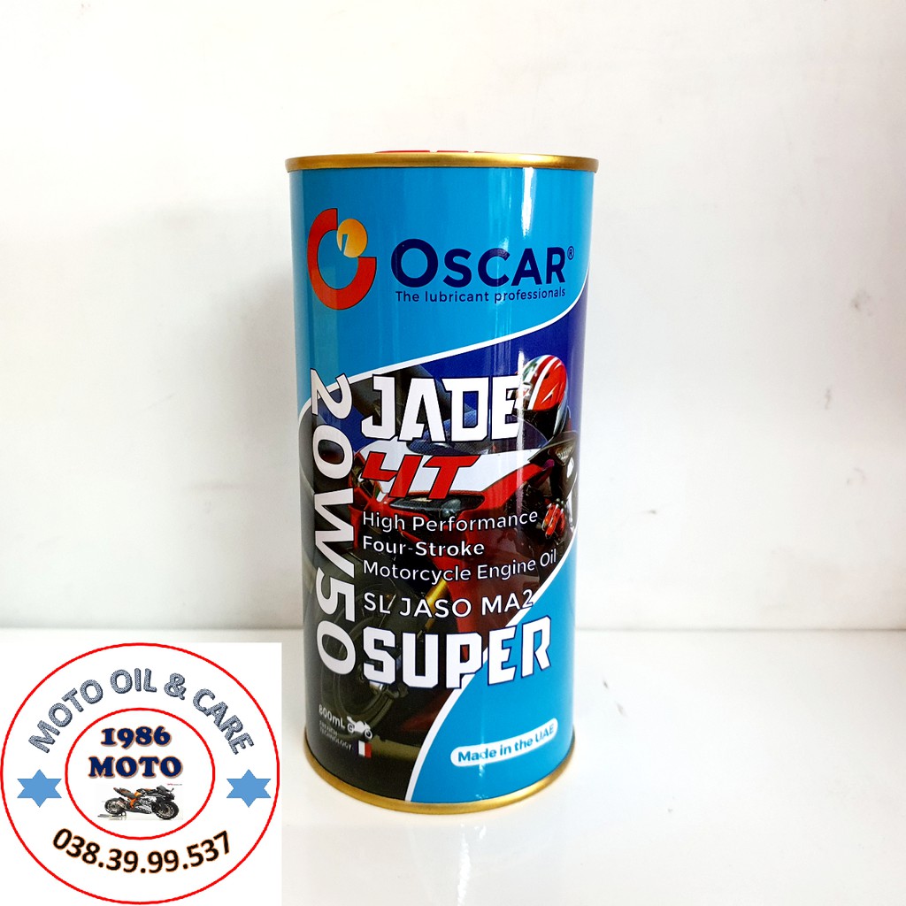 Nhớt 20W50 xe số Oscar Jade 4T Super Synthetic Blend - NHỚT XE SỐOscar Lubricants là công ty đến từ Các Tiểu Vương Quốc Ả Rập Thống Nhất (UAE) chuyên sản xuất các sản phầm dầu nhớt, phụ gia, bôi trơn... với công nghệ của Pháp.