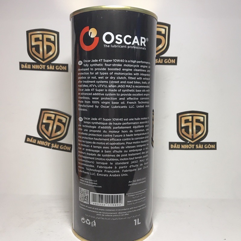 Nhớt xe côn tay tổng hợp toàn phần Oscar 10W40 SN Jade 4T Super Fully Synthetic là nhớt tổng hợp toàn phần theo tiêu chuẩn API, JASO. Phù hợp với xe côn tay 150cc đời mới như Exciter, Winner, Raider, GSX, R15, MT.