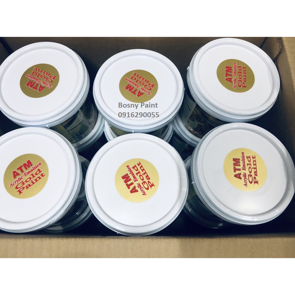 Nhà Cửa & Đời Sống > Dụng cụ & Thiết bị tiện ích > Sơn nhà cửa || Sỉ 1 kiện Sơn nước nhũ vàng ATM 999 (12 lon x 980g)Còn hàng