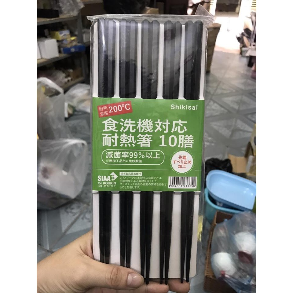 Sỉ 10 Bộ 10 đôi đũa nhựa chịu nhiệt hàng Nhật, Đũa kháng khuẩn Shikisai