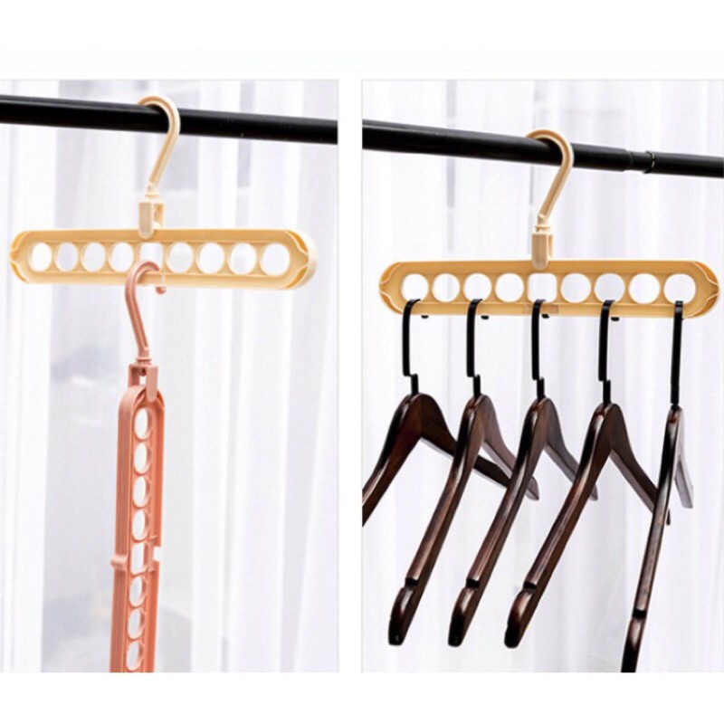 Sỉ 10 Bộ móc treo quần áo đa năng siêu tiết kiệm diện tích - 9 lỗ và xoay 360 độ (nhiều màu)