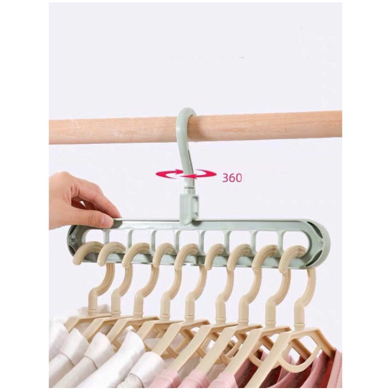Giới thiệu Sỉ 10 Bộ móc treo quần áo đa năng siêu tiết kiệm diện tích - 9 lỗ và xoay 360 độ (nhiều màu)