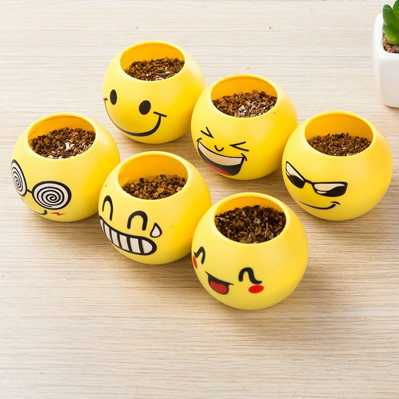 - Chậu trồng cây mini để bàn với nhiều mặt cười biểu cảm siêu đáng yêu giúp bạn vừa thư giãn xua tan căng thẳng vừa trang trí căn phòng thêm xinh ...- Bộ sản phẩm bao gồm: chậu + chất mùn giúp hạt nảy mầm + hạt giống