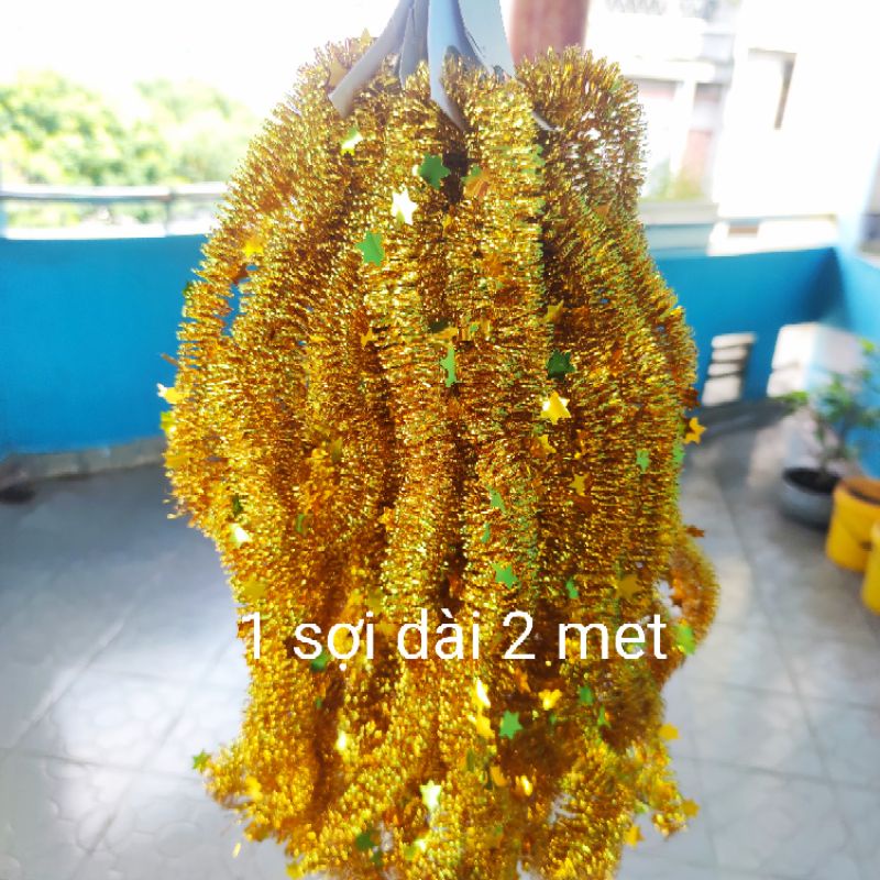 sản phẩm gồm 10 dây hoặc 5 dây kim tuyến chia theo phân loạimỗi dây dài khoảng 2 met dùng trang trí bông tỏi thần tài chưng tết,kim tuyến nhí ,kim tuyến xoắn giá sĩ