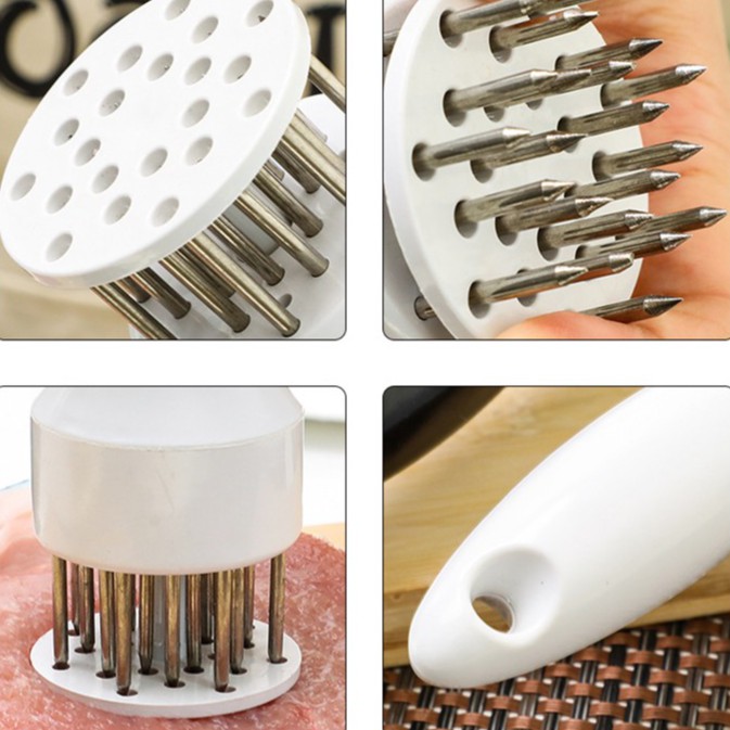 ** Kiểu dáng nhỏ gọn, vừa vặn tay cầm, làm bằng chất liệu nhựa, inox bền và an toàn cho sức khỏe, giúp làm mềm thịt, bít tết trước khi ướp gia vị.
