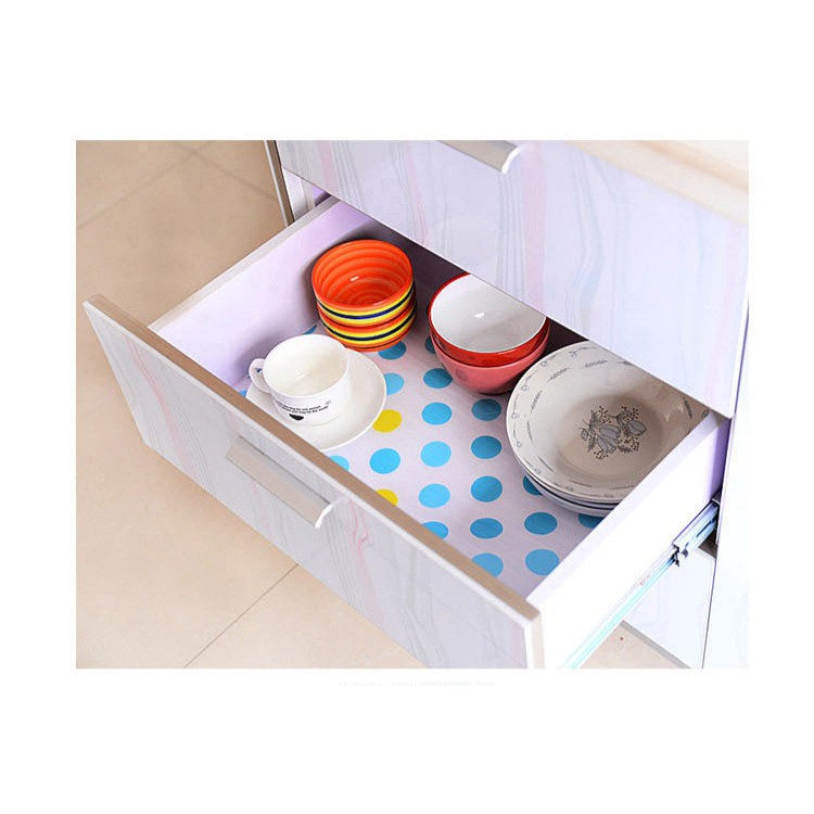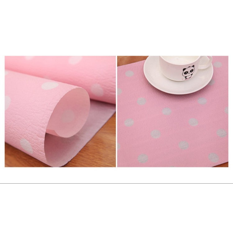 Giấy trải bàn tiện dụng có thể dùng làm khăn trải bàn, lót ngăn tủ đựng bát đĩa, lót giá để giày.Giấy trải bàn giúp cho bàn ăn, bàn uống nước… luôn sạch sẽ, khô ráo.