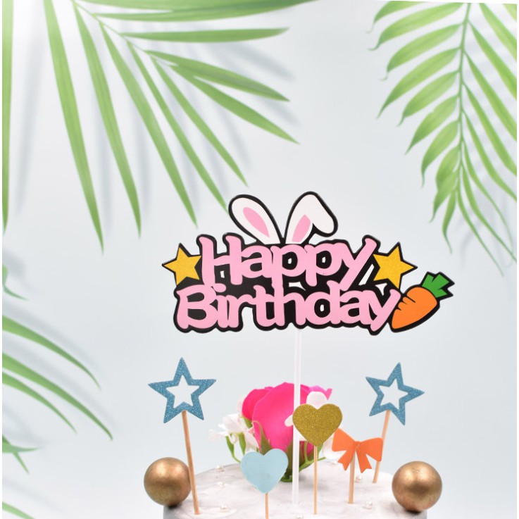 Giới thiệu Sỉ 10 hình cắm Happy Birtday Thỏ cà rốt trang trí bánh, topper cake
