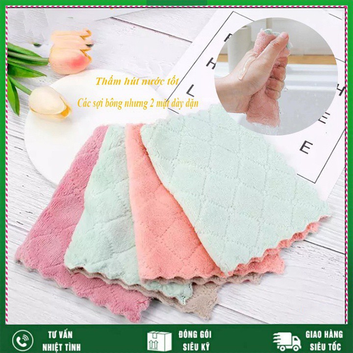 - Khăn Lau Bếp Đa Năng 2 Mặt thấm hút nước tốt so với các loại khăn khác do 2 mặt khăn thiết kế các sợi bông nhung dày dặn.