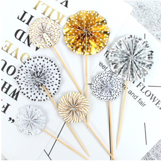 Sỉ 10 Set hình cắm hình quạt hoa mặt trời trang trí bánh, xòe quạt, chong chóng- Dùng cắm trang trí lên bánh kem, bánh sinh nhật các loại...
