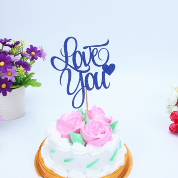 Giới thiệu Sỉ 10 topper giấy nhũ chữ Love You cắm bánh sinh nhật, giấy nhũ trang trí