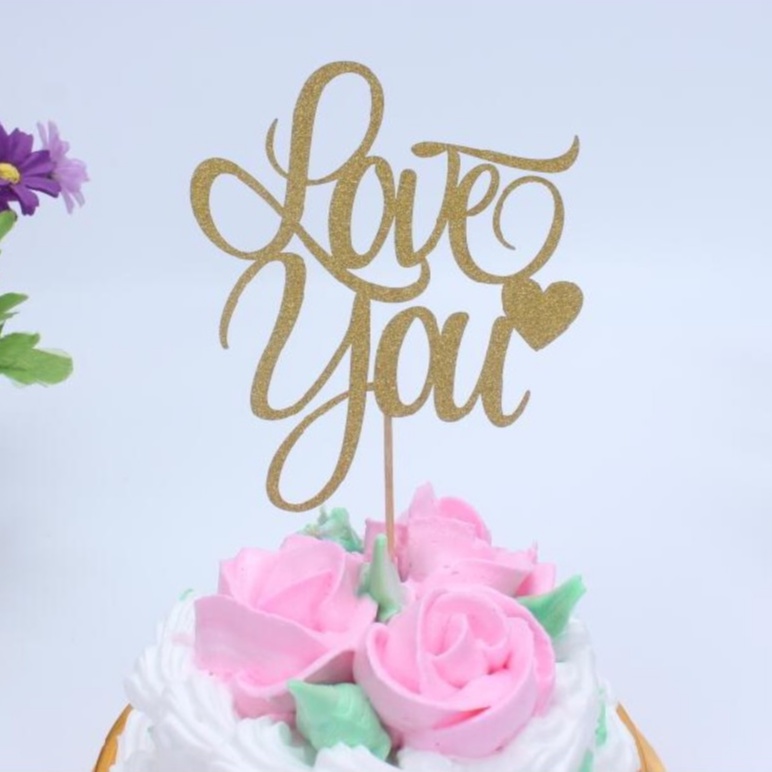 Nhà cửa & Đời sống > Trang trí nhà cửa > Khác || Sỉ 10 topper giấy nhũ chữ Love You cắm bánh sinh nhật, giấy nhũ trang tríCòn hàng
