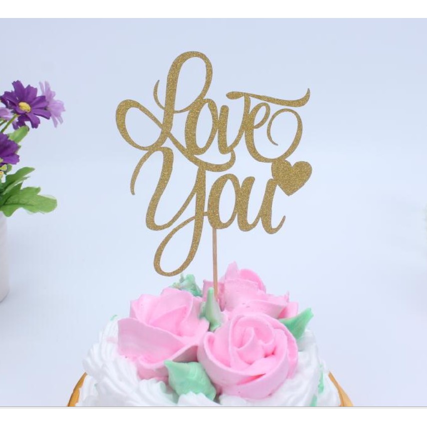 Giới thiệu Sỉ 10 topper nhũ chữ Love You trang trí bánh sinh nhật, topper cake