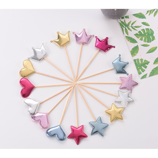 Nhà cửa & Đời sống > Dụng cụ nhà bếp > Dụng cụ nướng & trang trí bánh || Sỉ 10 túi 50 topper que cắm tim sao da trang trí bánh, hình cắm da, topper cakeCòn hàng