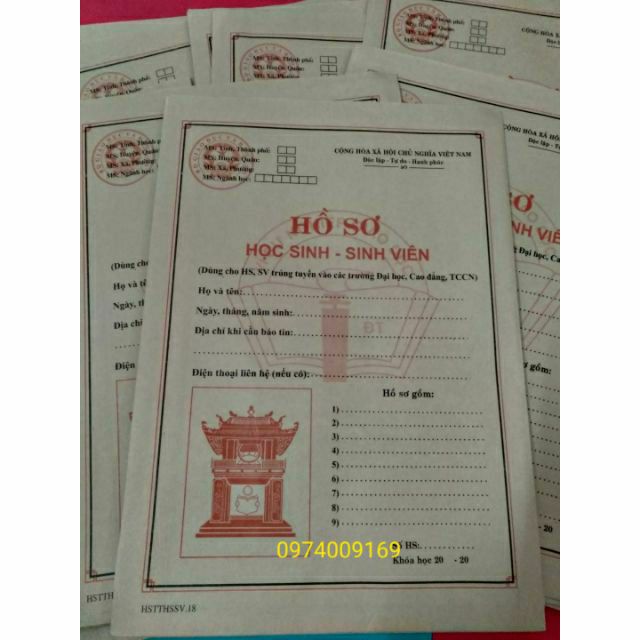 Hồ sơ gồm 1 vỏ hồ sơ + 2 tờ lý lịchHồ sơ học sinh sinh viên