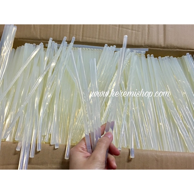 Keo nến dài 26cm có đường kinh 0.7cmCác bạn sử dụng vớ súng bắn keo để dán các đồ như mô hình- que kem- làm hoa vải- dây buộc tóc....