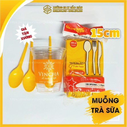 Sỉ 100 muỗng nhựa 15cm dành cho quán trà sữa, muỗng nhựa cà phê, muỗng nhựa sinh tố