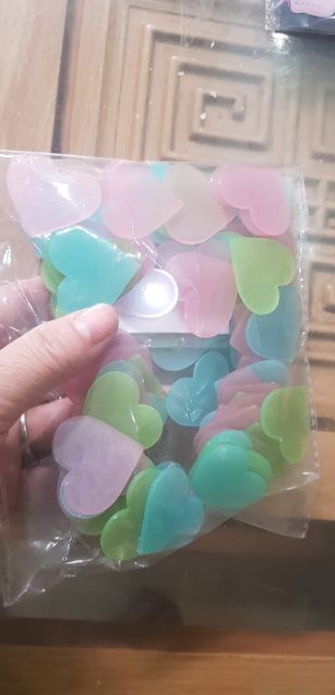 Gói 100 miếng trái tim dạ quang nhiều màu kèm 100 miếng keo dánChuyên sỉ số lượng lớn Tim dạ quang, tuyết dạ quang, bướm dạ quang, sao dạ quang số lượng lớn