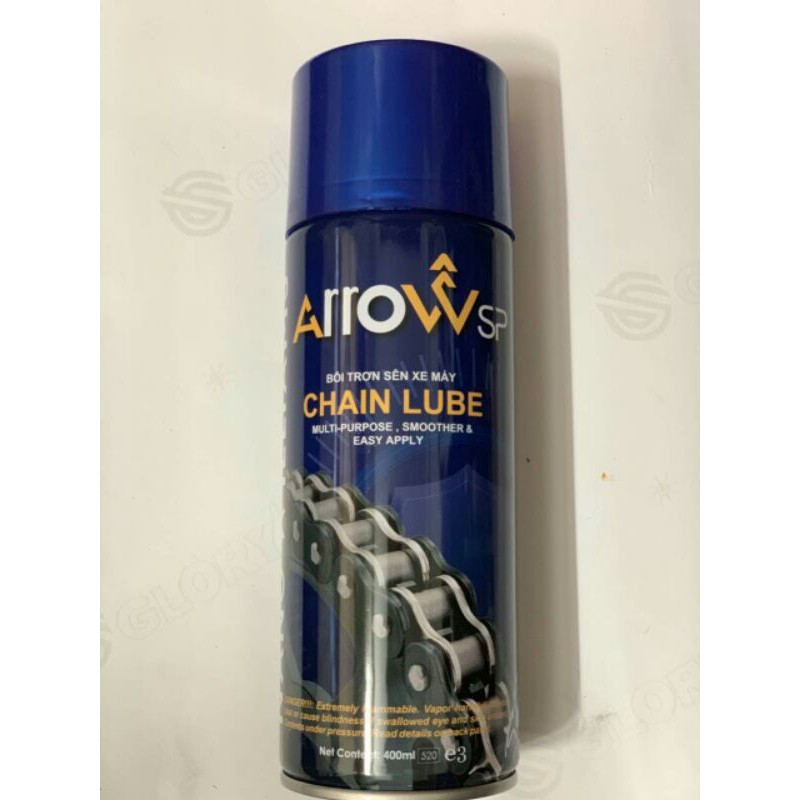 - Arrow SP Chain Lube được sử dụng bôi trơn xích dùng cho những xe mô tô sử dụng xích trần và những dòng mô tô địa hình.- Sản phẩm vẫn giữ được tính năng bôi trơn ngay cả khi trong nhiệt độ nóng, lạnh hay cả trong đều kiện ngập nước(đi trong trời mưa) chống thấm nước, ngăn ngừa mài mòn, bảo vệ nhông đĩa, nâng cao hiệu quả truyền động và tăng cường tuổi thọ của nhông xích.