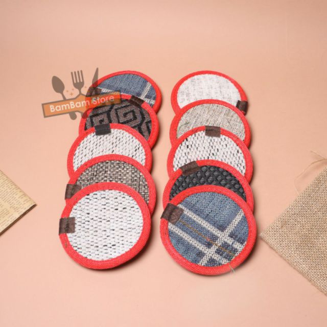 Lót ly nỉ cao cấp thấm hút nước tốt; đế mỏng phơi nhanh khô. Họa tiét nỉ sang trọng, bền đẹp...