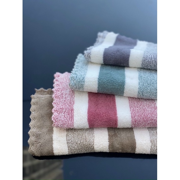 Khăn mặt siêu mềmHoạ tiết kẻ các màu như ảnh..