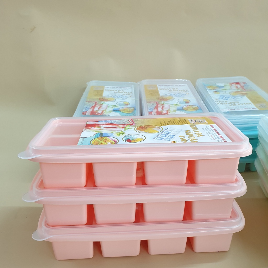 Khay đá có nắp 8 viên nhựa Việt Nhật (MS:6932), vỉ đá, khuôn làm thạch, khay trữ đồ ăn dặm cho bé