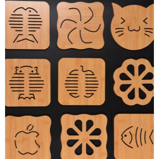 ** Sản phẩm dùng để lót xoong, nồi, chảo, bát đĩa, cốc chén … được làm bằng gỗ giúp cách nhiệt giữa xoong, nồi và mặt bàn hay tủ đựng thức ăn hiệu quả.** Bên dưới mỗi miếng lót có các đệm cao su chống trơn trượt tốt.
